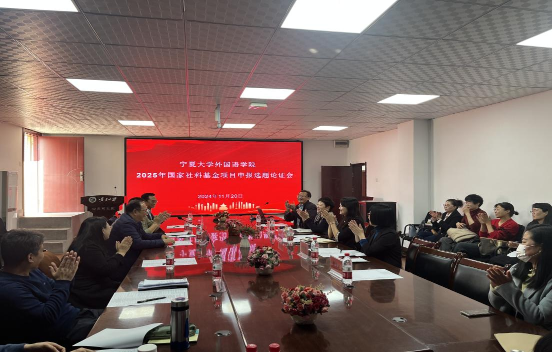 外国语贝宝官网2025年度国家社科基金申报选题论证会”。自治区政协文史委主任杨占武研究员、宁夏社科院许峰研究员、北方民族大学王冬梅教授与马建民教授、贝宝官网