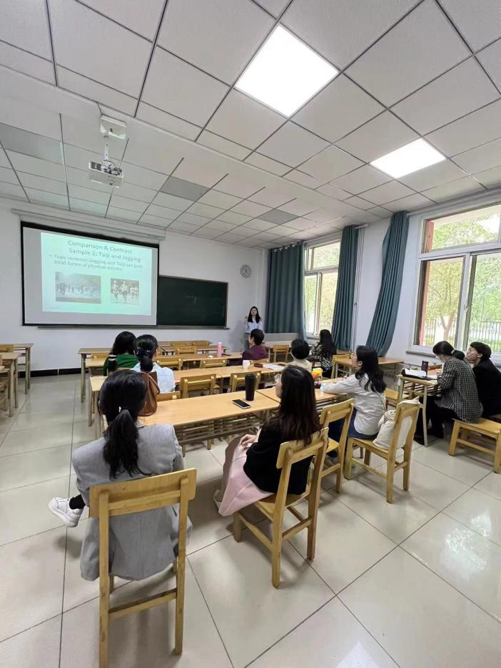 两位老师教学展示过后,其他老师根据两位老师的教学设计、课堂活动、教学方法等方面积极发表了自己的看法,并就如何依据学生的接受度优化教学设计,提高教学效果等问题展开了深入探讨。