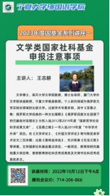 客座教授王志耕老师在线上为我院作题为“文学类国家社科基金申报注意事项”的学术讲座。讲座由副院长胡笑瑛教授主持,我院60余名教师参加讲座。