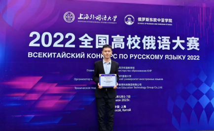 2023年5月21日,2023年高校俄语专业翻译邀请赛决赛在北京外国语大学举行,经过激烈角逐和严格筛选,我院俄语专业2019级李东泰同学荣获本科生组决赛二等奖的好成绩。