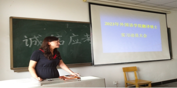会议伊始,朱海燕书记对翻译硕士的实习环节做了简单介绍,强调了实习环节的重要性,并从实习态度、实习纪律、实习中应该注意的细节等方面做出了具体要求。