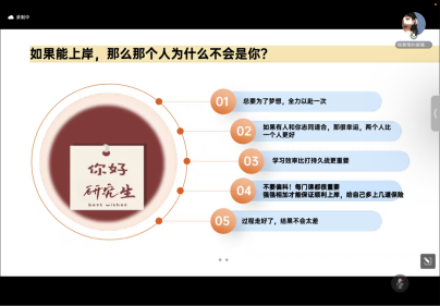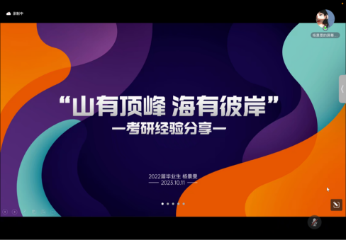 外国语贝宝官网英语语言文学专业)以“山有顶峰,海有彼岸”为题目,从考研目标、复习规划、学习方法、资源整合、考试内容、职业规划等方面进行分享。