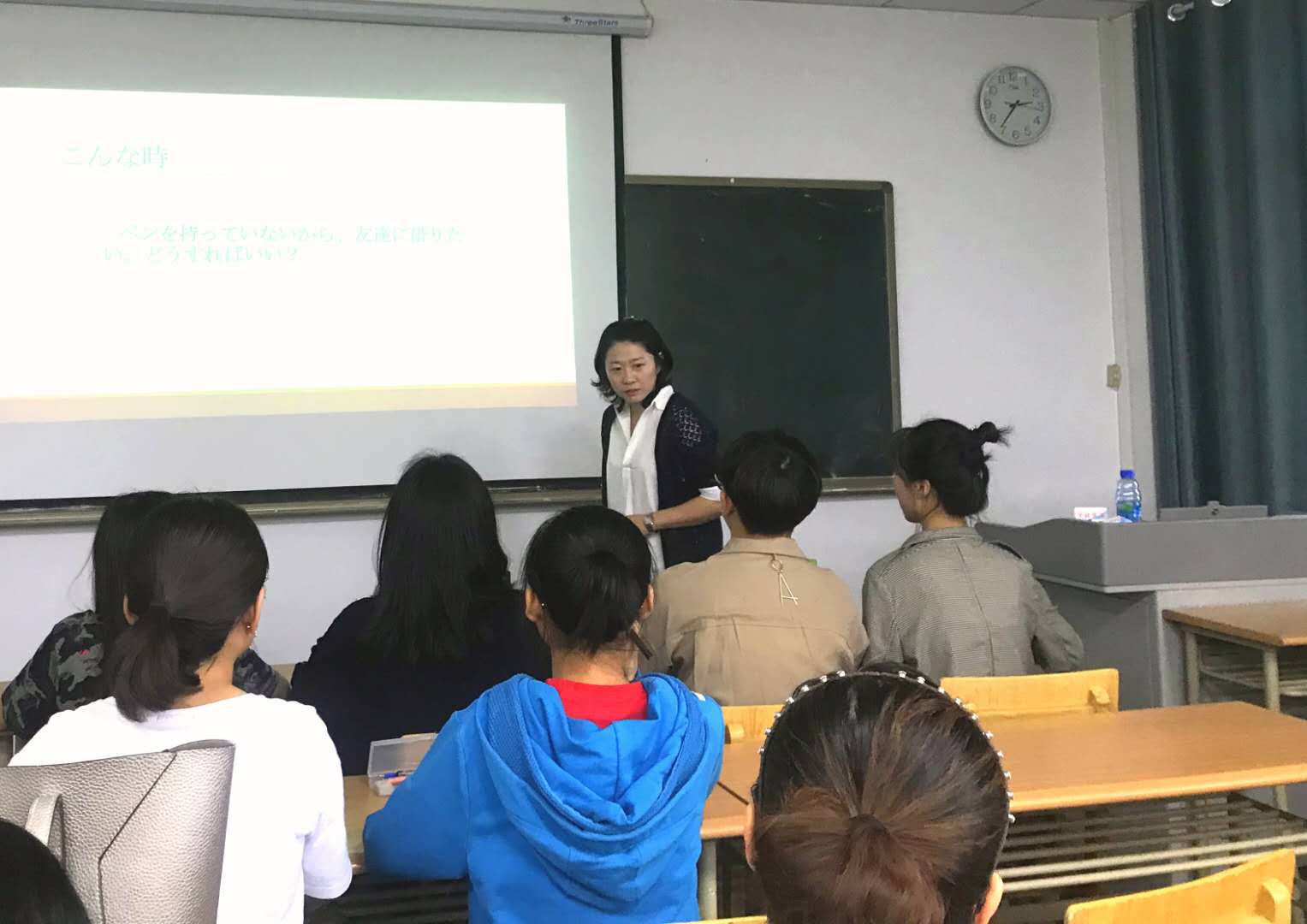 为了配合期中教学检查工作,2019年5月22日下午,由我院专业外语教学各系与“教学名师工作坊”联合举办的教学观摩活动在外国语贝宝官网314室如期举行。观摩活动由赵晓佳副院长主持,日语专业的崔沫舒老师、英语系的金丽华老师和王奕文老师、以及在全国专业外语教学比赛中获奖的预科贝宝官网的吴楠老师分别进行了高级日语听力、基础英语、英语阅读和商贸英语课程的课堂教学示范。