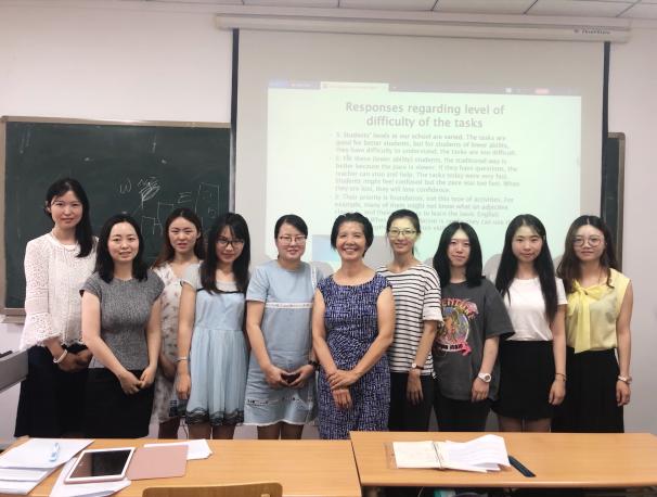 此次系列讲座长达五天,分五个不同主题的进行,它们分别是:1, Introduction of the Six Principles for Exemplary Teaching of English Learners (TESOL热题:语言教学的六大原理) ; 2, Using Digital Technology to Engage Learners with Meaningful Vocabulary Interactions (如何使用数字技术提高词汇量); 3, Seven Strategies of Highly Effective Readers (提高阅读能力的七大策略); 4, Developing Writing Skills through Six Traits (通过六个特性提高写作能力); 5, Teaching Grammar through Tasks: A Case Study (任务型语法教学:案例研究)。