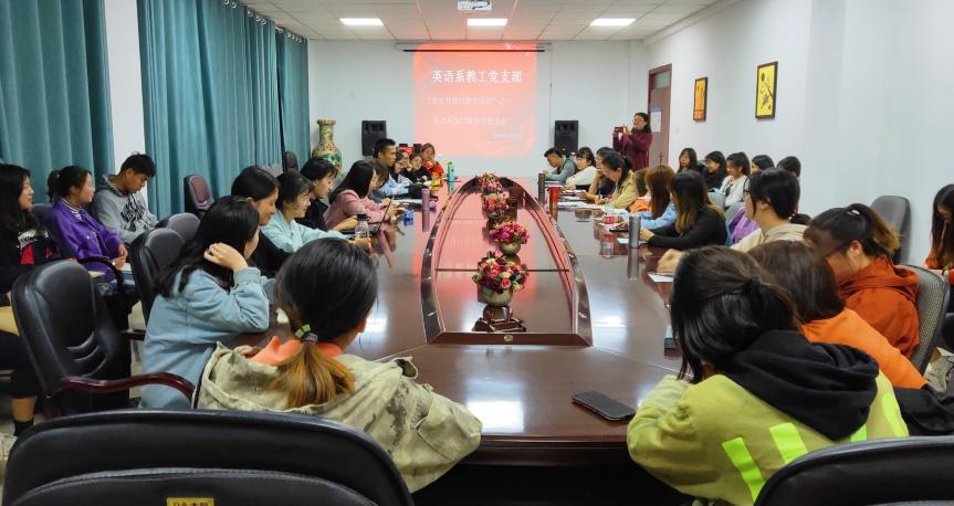 为进一步加强“不忘初心、牢记使命”主题教育相关工作,发挥基层教工党支部党员模范带头作用,立足本职岗位,落实立德树人根本任务。外国语贝宝官网英语系教工党支部积极开展“党员督学活动”,通过开展志愿帮扶,采取座谈、调研、进班辅导答疑等形式,帮助学生在思想、学业上更好的提升发展。服务对象覆盖本科1-3年级,该项活动10月9日晚已进行第一次座谈交流,在学生中取得很好的反响。