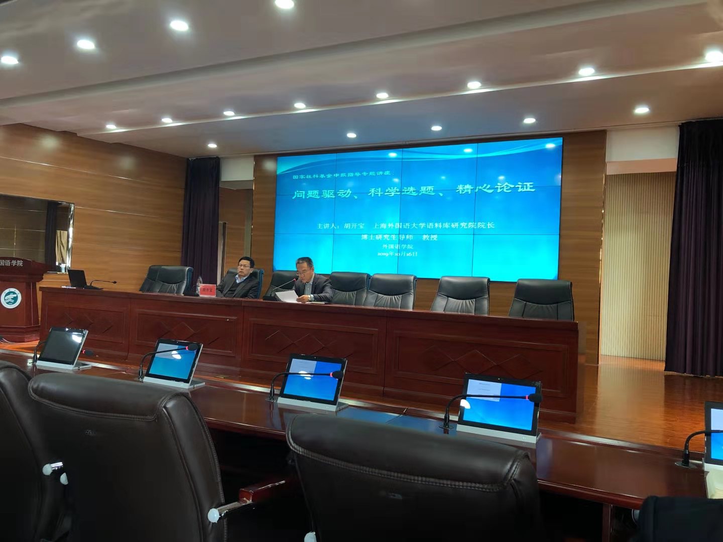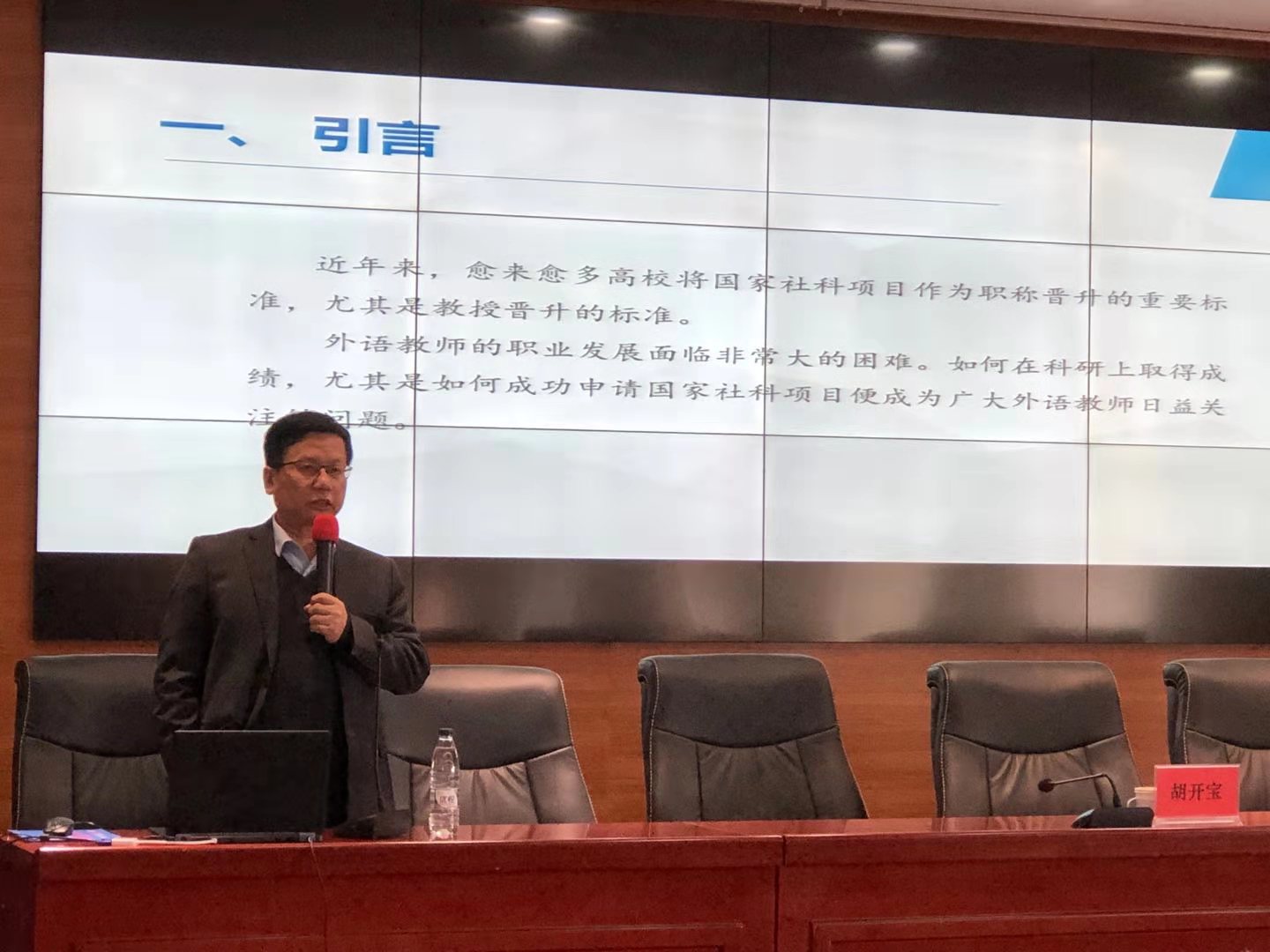 外国语贝宝官网作了题为“问题驱动、科学选题、精心论证——国家社科项目申报的几点想法”的精彩讲座。讲座由藏志勇副院长主持,贝宝官网各级领导及部分教师出席活动并聆听了讲座。