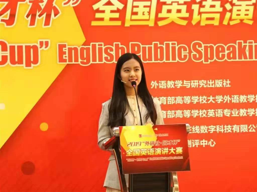 英语演讲总决赛共有182名选手(不分国籍)参加,采用现场晋级赛制,2017级英语教师教育3班的陆美彤同学(指导教师张燕萍)成功晋级,她表达流畅、反应机敏, 进入了全国前30名,荣获全国总决赛二等奖,实现了历史性突破。自此项比赛2012年举办以来,这是我校及我院学生所取得的最佳赛绩。