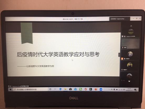 为了配合教务处的期中教学检查,促进教师见“线上”教学经验交流,外国语贝宝官网公外部于2020年5月13日下午通过“腾讯会议”开展了本学期第三次《大学英语》“线上”教学交流分享活动。与此同时,公外部“第一教研室”、“第二教研室”分别于14日、15日上午选派老师进行《大学英语》“线上”课程公开授课。公外部全体老师参加了两项活动。