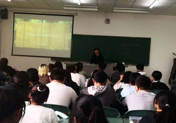 王丽文老师从英语词汇学习的角度入手,帮助学生将词汇的学习情景化,生活化。在教学过程中两位老师全程英文授课,运用了启发式、合作式、探究式等教学方法,设计小组活动,充分调动学生主动参与课程的积极性。教学目标明确、重点难点突出、课堂信息量大、气氛活跃、课件设计新颖,教学风格各有特色。