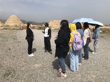 团队一行首先来到了西夏陵国家考古遗址公园,针对相关中英文翻译进行了调研。西夏陵是留存至今规模最大、保存最完整的一处党项西夏历史文化遗存。团队成员对西夏博物馆内的标志牌、藏品展览牌等进行了一系列的拍摄活动,在工作人员的讲解中将中英文的展览牌进行对照翻译调查,发现标志牌、相关翻译文字、展览牌上仍有需要改进得地方。