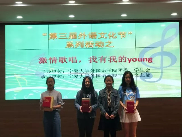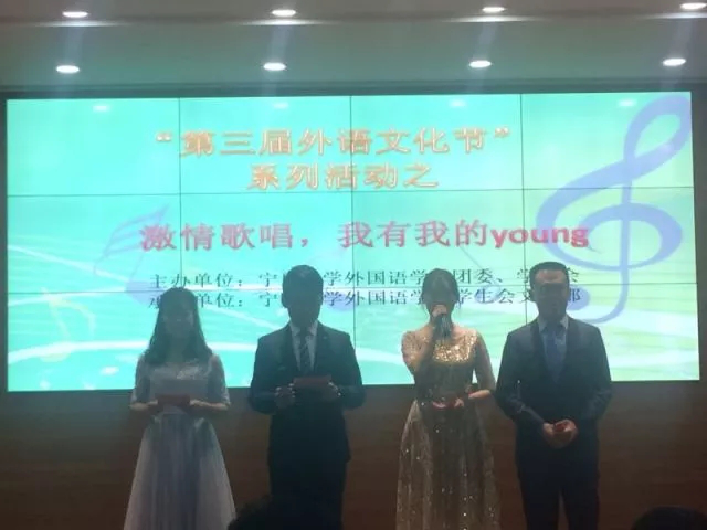 2018年5月10日下午6:30,在外国语贝宝官网403报告厅举办“第三届外语文化节”系列活动之“想唱就唱,我有我的young”外文歌曲大赛决赛。