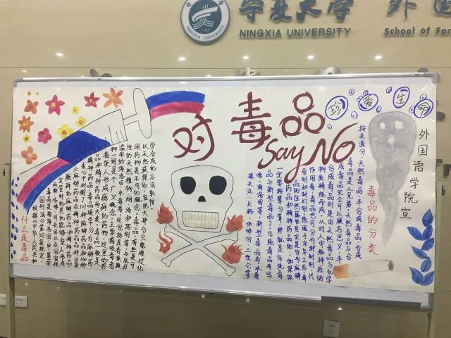 外国语贝宝官网于2018年5月10日,组织同学们开展了禁毒系列活动之禁毒板报设计活动。目的是让同学们了解常见毒品的种类、毒品对身心及社会的危害并教导同学们如何自我保护、如何抵制毒品的诱惑。