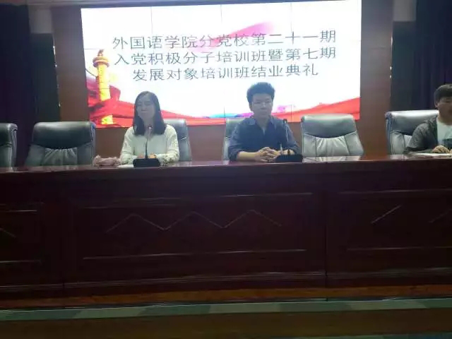 5月21日下午6:30,外国语贝宝官网分党校第二十一期入党积极分子培训班暨第七期发展对象培训班,于403报告厅举行了结业典礼。