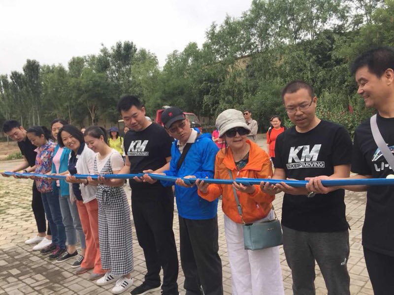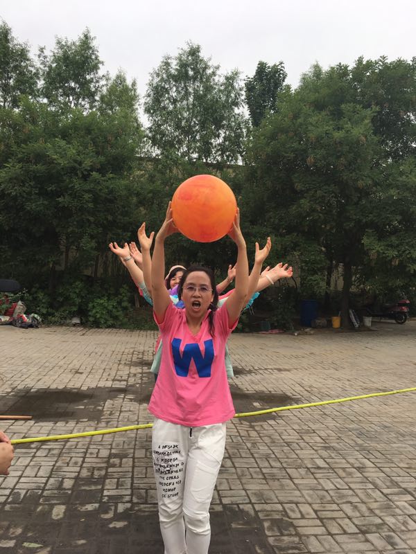 快往这边瞧一瞧:“珠行万里”已开始了,参赛队员手持“凹槽”,快步对接,一个白色的玉珠在队员的齐心协力下,稳步向前滚动;背靠背托球“心心相映”项目则让队员充分感受到了“合作”才是硬道理的集体主义精神。