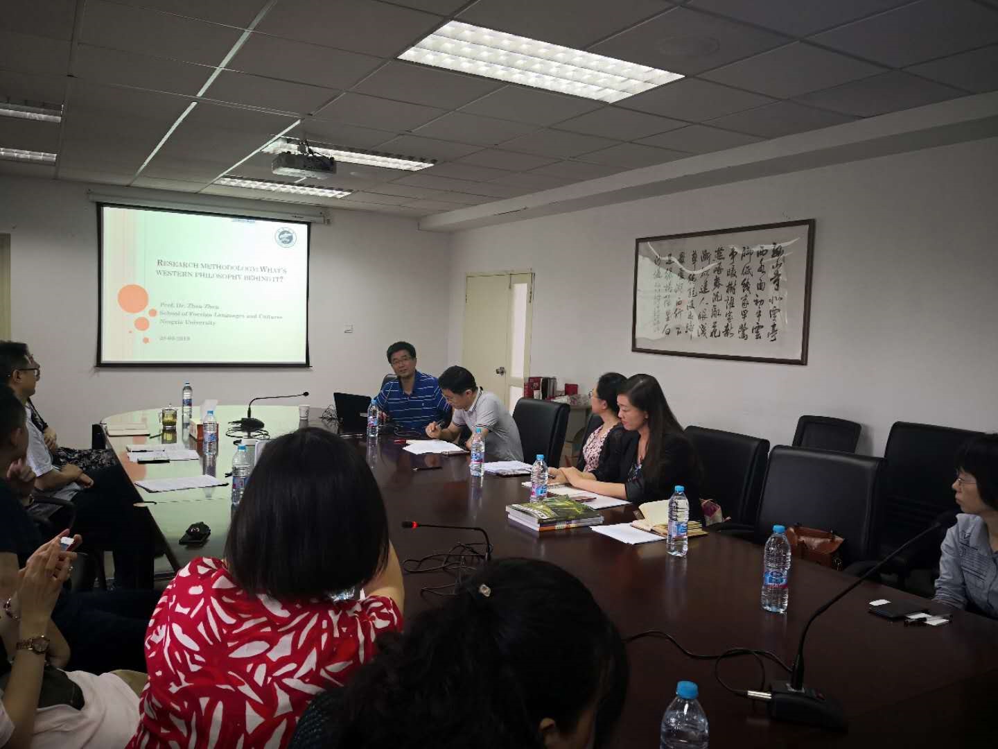 下午,周震院长在同济大学同文楼314室做了题为《Research Methodology: What's Western Philosophy Behind It?》全英文的报告,从西方哲学本体论和认识论的角度揭示了外语研究中常见研究方法论的哲学基础。参加讲座的公英部领导班子成员和骨干教师纷纷表示对其教学与科研具有启发意义。随后,同济大学外国语贝宝官网宋缨副院长和我院周震院长畅谈了下一步的合作和交流计划,与会教师积极发言,气氛热烈融洽。