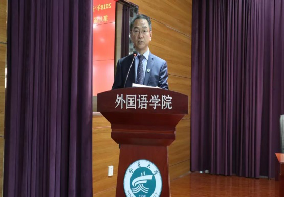 致开幕词,词间表达了对选手们的热烈欢迎与外语教育的未来展望。