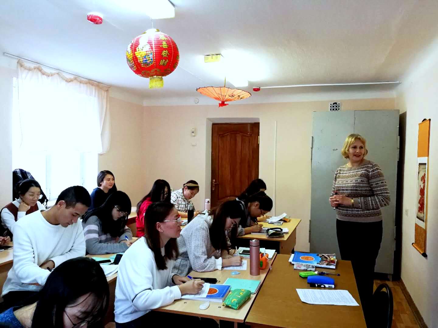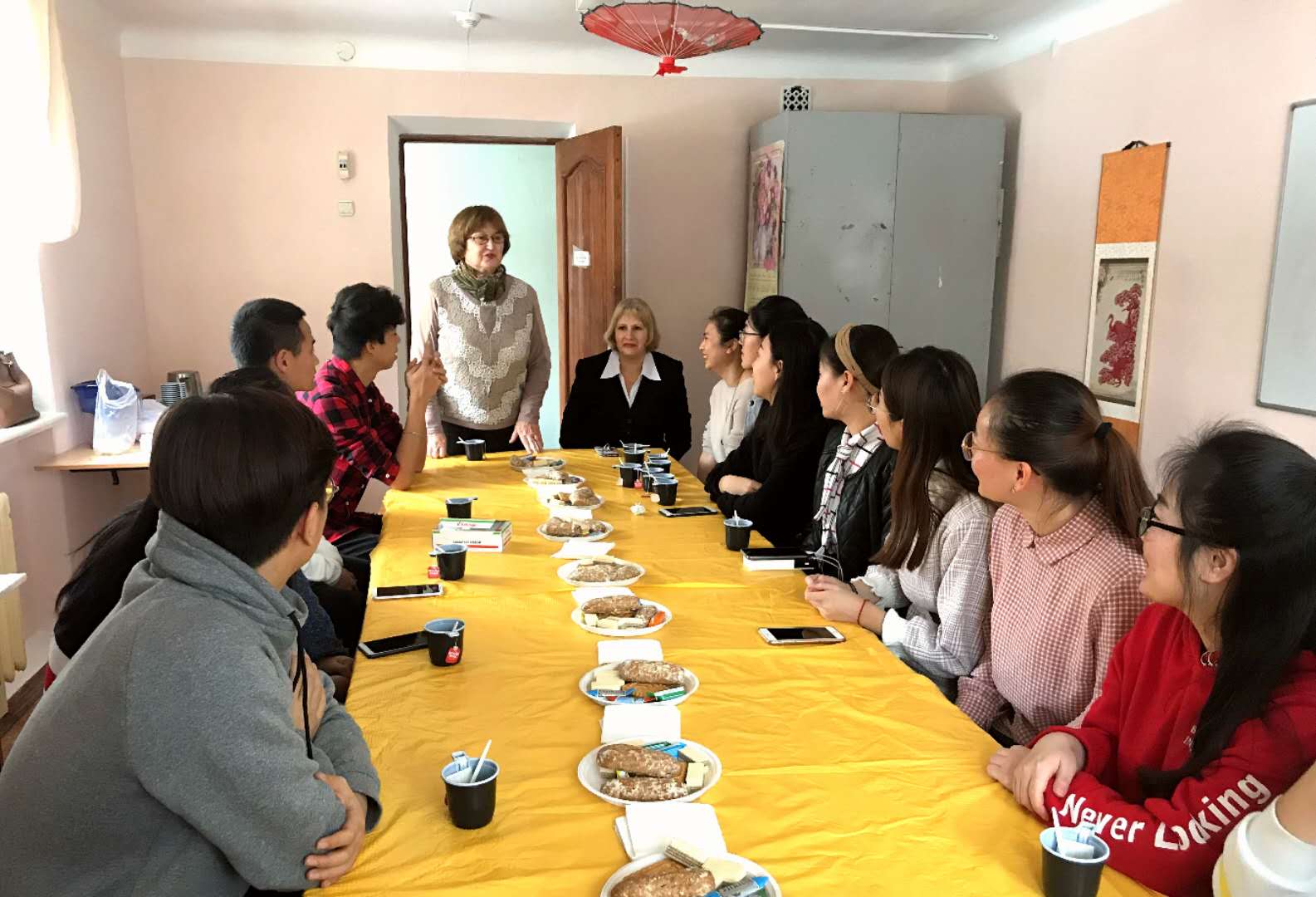 我校代表团与沃罗涅日大学语言系的教师们、以及我校在该系访学的2016级俄语专业全体学生进行了座谈。座谈会上,沃大语言系的老师们介绍了我校访学学生的学习和生活情况。俄方的任课教师们充分肯定了我校2016级俄语专业同学们所具备的良好综合素质和专业基础,对他们在学习上的努力、生活中的积极乐观和团结友爱表示高度赞赏。我校代表团对俄方教师们的辛勤努力表示了感谢。座谈中,代表团与学生们进行了深入交谈,了解他们在学习和生活中存在的困难。会后,代表团实地查看了学生们的学习和生活环境。