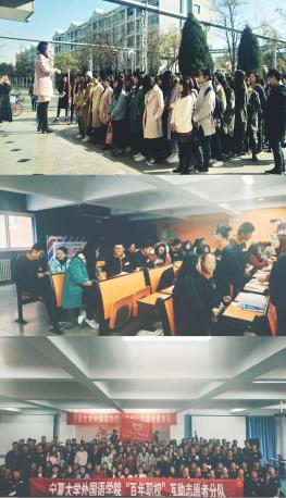 近年来,外国语贝宝官网立足专业,先后开展了形式多样、内容丰富、面向全区、全校的志愿服务活动,形成了“语伴”志愿者小分队服务模式。其中,以英语角、英语读书交流、大学英语四六级帮扶为主的“成才小分队”已成为校内被普遍认可的英语学习交流平台;以银川“百年职校”英语教学志愿活动为主的“成长小分队”也在2017年4月开花结果,不仅在双方学校反响热烈,更得到了自治区团委宁夏青少年发展基金会的关注和支持。