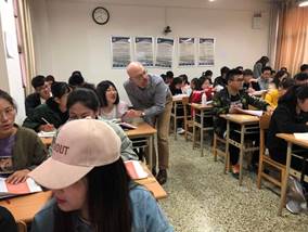 为配合学校“一流本科教育提升行动”计划,提高我校大学英语课堂教学质量,经与外国语贝宝官网外教协商,“外教进大学英语课堂”活动于2019年3月29日早晨7:40正式开课。活动由Dale De Weerd、Dr. Rumbley、Carolyn Stent、Miss Anthony四名外教分为两组分赴2018级23个非英语专业本科生班级进行大学英语课堂教学。
