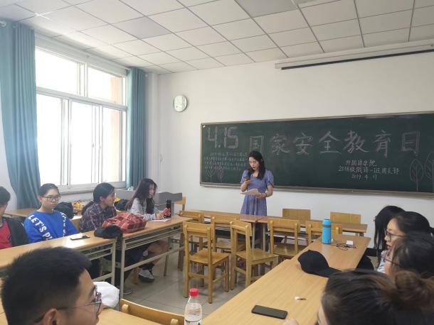 外国语贝宝官网18级全体同学以班为单位按时举行了“国家安全教育”主题班会。
