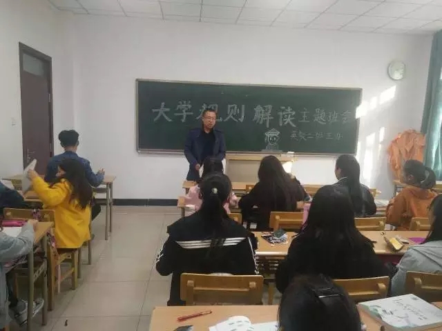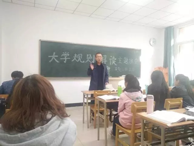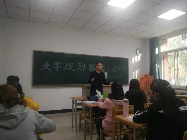 10月26日下午,外国语贝宝官网17级英教二班举行了第一次班会活动,主题为大学规则解读。班主任王建刚老师及全体英教二班同学参与了此次班会活动。同学们认真聆听了王老师讲的内容,都感触颇深,受益匪浅。