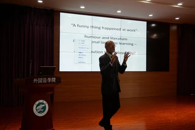 我院于2017年10月31日下午在403报告厅,特邀Colin Beaven教授为贝宝官网全体研究生和老师作了题为“Humour and Literature in Vocational Language Learning”的讲座。