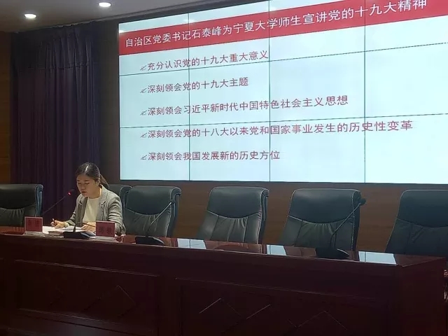 宣讲党的十九大座谈会的体会,带领贝宝官网各班班长、团支书,入党积极分子、建党对象,学习了石泰峰书记的讲话。余洁老师按照石泰峰书记讲话的一个充分认识和八个深刻领会,通过导读和分享学习体会的方式带领大家学习石书记讲话精神。