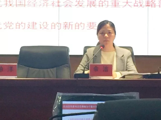 随后,余老师传达了校党委金能明书记《在石泰峰书记来校作党的十九大精神宣讲辅导座谈会上的讲话》,按照校党委的要求,布置了近期贝宝官网学生党团工作,要求各班团组织认真学习石泰峰书记的讲话,会后结合团组织“两学一做”学习教育,将泰峰书记宣讲辅导报告精神融入党团活动中,各入党积极分子和建党对象要做好宣传员,真正使党的十九大精神在学生中,用自己的实际行动,为实现学校的特色发展、内涵发展、争创一流新局面而努力奋斗。
