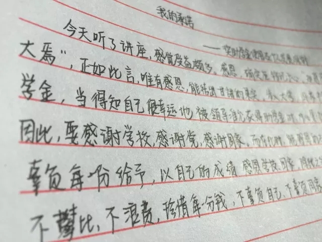 同学们们仔细地写下了真诚的承诺,决心努力学习,积极参与活动,努力回报社会,成为有担当有责任心的青年。