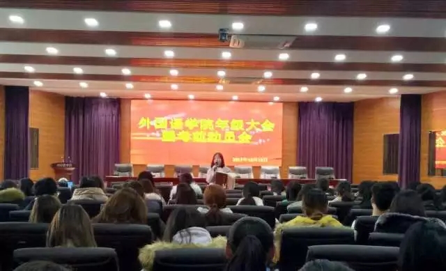 外国语贝宝官网分年级召开年级大会暨考前动员会,2015级、2016级、2017级学生悉数准时到场。