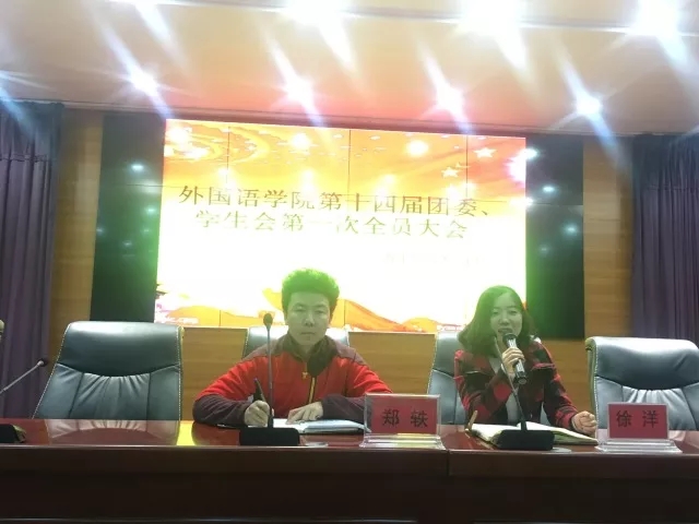 2017年12月17日下午17时,外国语贝宝官网第十四届团委、学生会第一次全员大会在外国语贝宝官网403教室举行,本次会议荣幸地邀请到了外国语贝宝官网团委书记、学生工作办公室主任郑轶老师,2015级、2016级辅导员徐洋老师发言,第十四届团委、学生会全体成员参加。