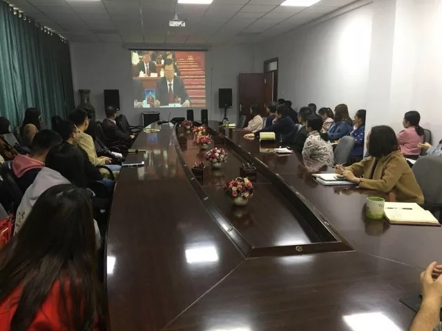 2018年 3月20日上午,外国语贝宝官网组织全院师生代表在贝宝官网会议室收看了十三届全国人大一次会议的闭幕会。