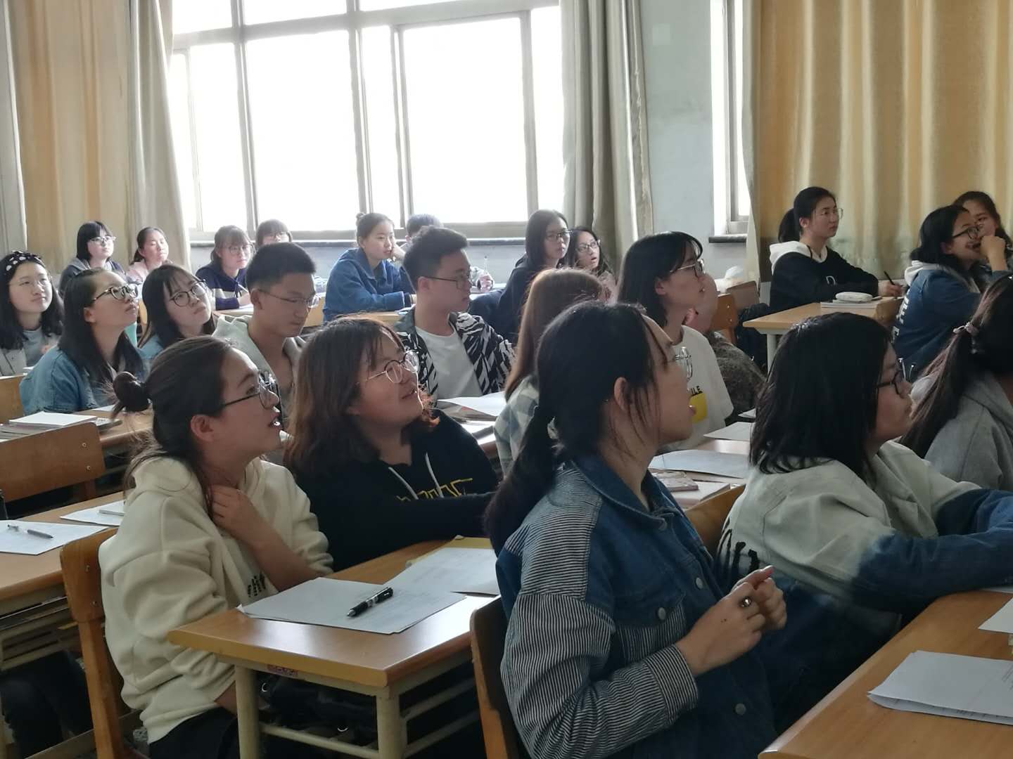 外教积极而又生动的英语课不仅提升了我校学生学习英语的兴趣,与外教近距离的接触也增加了学生英语学习的自信。与此同时,外教老师们敬业的教学态度和专业的语言教学水平为我校英语教师上了一堂很好的示范课。此次活动受到了学生和老师们的一致认可和欢迎。“外教进大学英语课堂”活动将陆续于本学期在2017级学生的课堂中开展,增加学生在英语情景中学习的机会。