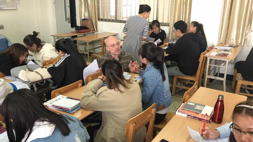 为配合学校“课堂教学质量提升年”计划,提高我校大学英语课堂的教学质量,经与外国语贝宝官网外教协商, “外教进大学英语课堂”活动于2018年3月28日早晨7:40正式开课。活动由Dale De Weerd、Sarah Beth Harmon、Carolyn Stent、Bob Cheah四名外教分为两组分赴2017级非英语专业本科生的大学英语课堂进行教学。