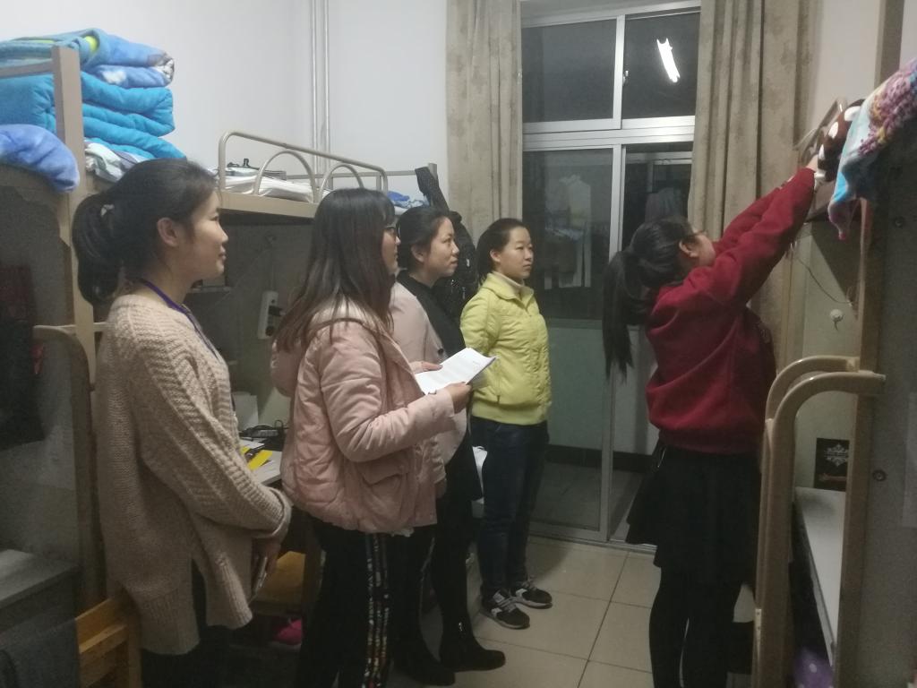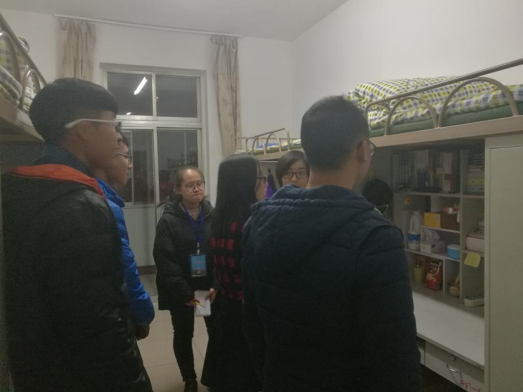 为做好学生宿舍安全与管理工作,规范宿舍卫生及住宿行为,消除安全隐患,12月5日晚,外国语贝宝官网党委副书记余洁老师、学生工作办公室主任郑轶老师、团委书记王朝老师、2016级辅导员徐洋老师以及团委、学生会部分成员对外国语贝宝官网学生所属宿舍楼进行检查。