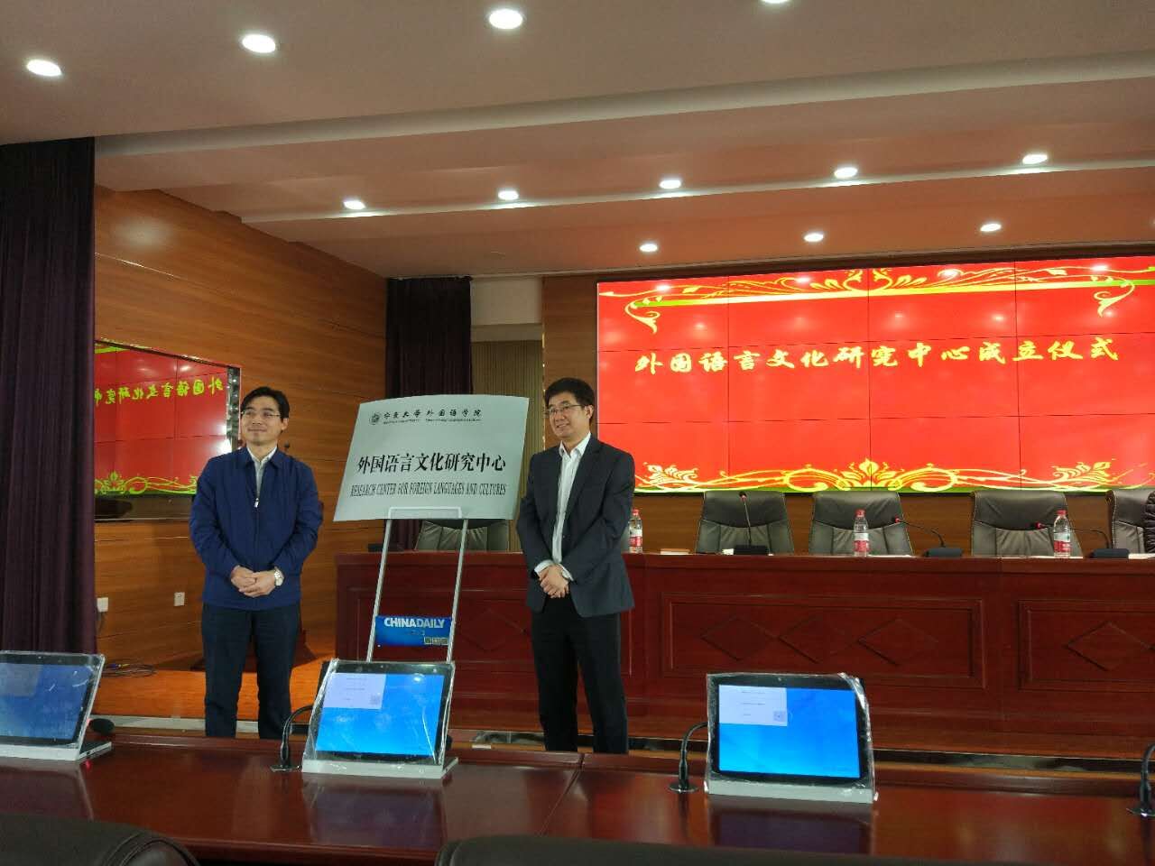 外国语贝宝官网外国语言文化研究中心在外国语贝宝官网报告厅正式揭牌成立。外国语贝宝官网党政负责人、科技处李学斌处长、赵军副处长及贝宝官网全体教师参加了揭牌仪式,仪式由外国语贝宝官网李文军副院长主持。