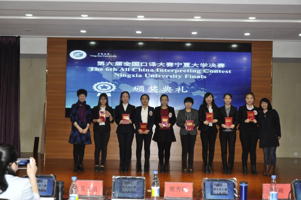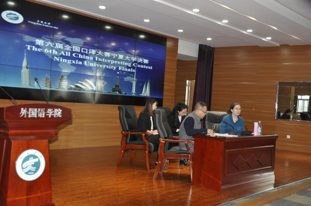 决赛。本次大赛由外国语贝宝官网的田莎和杨文姣老师主持;评委由专业译员和外国语贝宝官网口译方向的导师构成,他们分别是宁夏科技厅的翻译夏雨、翻译公司专职译员冯香和外国语贝宝官网的瞧秀梅教授、贾文娟副教授和徐洋老师。