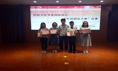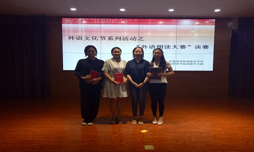 5月31日下午四时,外语文化节系列活动之“外语朗读大赛”决赛于外国语贝宝官网403报告厅成功举办。本次活动由外国语贝宝官网团委、学生会主办、外国语贝宝官网团委学习部承办。本次比赛诚邀外国语贝宝官网党委副书记余洁老师、副院长赵晓佳老师、学生工作办公室主任郑轶老师、团委书记王朝老师、2016级辅导员徐洋老师前来观赛。担任本次比赛的评委有王颖老师、马雅琼老师、孟丽老师、陈亚敏老师、李庆凤老师。