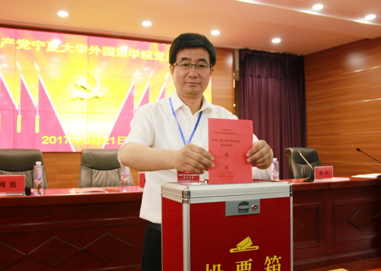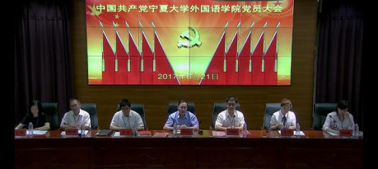 外国语贝宝官网党员大会在贺兰山校区外国语贝宝官网403报告厅召开。校党委常委、副校长谢应忠同志、校党委组织部章治宁同志、校纪委刘兆强同志、校督查室贾随生同志出席大会,赵晓佳、马菊玲、李玉红、乔幪、唐玲列席大会。