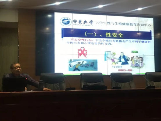 大学生性与生殖健康教育咨询服务中心主任、生命科学贝宝官网徐明教授于外国语贝宝官网403报告厅为新生进行入学教育讲座。
