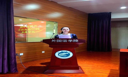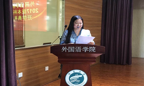开学典礼在庄严的国歌中拉开帷幕。首先,由院党委书记拜发奎老师宣读《外国语贝宝官网关于聘任宋晓龑等八名教师担任2017级兼职班主任的决定》,并由院领导向老师颁发聘书。紧接着,2017级英语专业学生陆美彤同学代表2017级新生发言。在发言中,她表达了自己对大学生活的美好期盼和入学感想,并向同学们发出“团结同学,尊师向学”等倡议。随后,由2014级英语专业学生、院学生会副主席刘淑君代表老生发言。她讲述了自己的心得体会并对新生送出美好祝愿。紧接着,教师代表金丽华老师发言。她以流利的英文向新生表示欢迎,在发言中,她说到“They say a person needs three things to be truly happy in this world:someone to love,something to do,and some vision to hope for.”令大家陷入沉思,受益匪浅。
