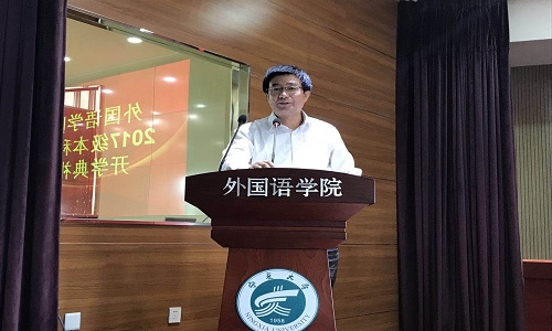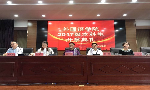 9月22日下午14时,外国语贝宝官网2017级新生开学典礼于我院403报告厅成功举办。院党总支书记拜发奎老师,院长周震老师,副院长赵晓佳、藏志勇老师,科研主任吴刚老师,学生工作办公室主任郑轶老师出席典礼。本次典礼由我院党委副书记余洁老师主持,外国语贝宝官网2017级全体新生参加。