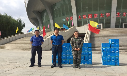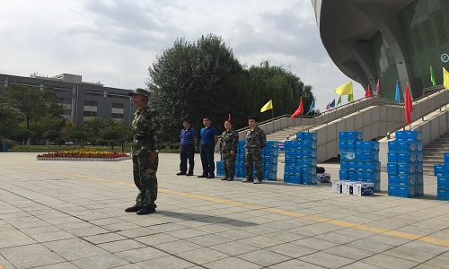 外国语贝宝官网党委书记拜发奎,院长周震,党委副书记余洁以及学生办公室主任郑轶一同到外国语贝宝官网军训场地慰问诸位参训教官及2017级军训新生。军训进程过半,效果显著,我院领导也始终关心着本院新生的训练情况。为保证军训期间学生们的身体健康,营养均衡,贝宝官网领导为每位新生发放了慰问品。
