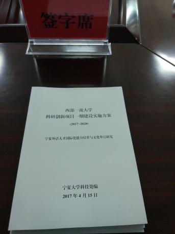 会上,马菊玲教授总体介绍课题相关内容,以及总课题与子课题之间,子课题相互之间的内在逻辑关系。三个子课题负责人洪春梅教授、马菊玲教授、乔幪教授分别就子课题“宁夏外语人才国际化能力培养模式”、“宁夏外语国际化人才培养平台研究”、“宁夏文化外宣翻译研究”的研究设想、组织安排、任务分工进行了介绍,随后进行了签字仪式。仪式结束后,科技处赵军副处长做了发言,就项目的推进提出了建设性建议。周震院长就项目的进度、阶段性成果的发表,、重大创新项目对今后我院学科建设、科学研究、国基金的申报的辐射带动作用做了重点说明。