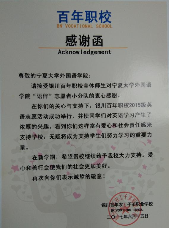 外国语贝宝官网了送上感谢信,表达学生对我院志愿者的感谢。
