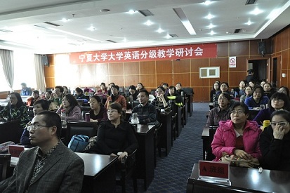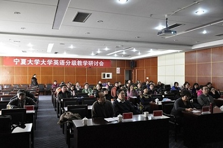 大学英语分级教学研讨会”。教务处副处长任磊、外国语贝宝官网院长周玉忠、副院长郭鸿雁和外国语贝宝官网公外部全体教师参加了研讨会。