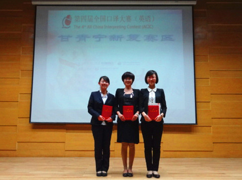 2015年4月25日,经过校内初选,外国语贝宝官网翻译硕士口译方向研究生冀晓丽、张洁、苏楷婷参加了在兰州举行的第四届中译杯全国口译大赛甘宁青新赛区的比赛。冀晓丽和张洁同学分别获得本赛区的一等奖和二等奖,成功晋级大区赛;苏楷婷同学获得优胜奖。三位选手的指导老师分别为外院翻硕导师周玉忠、瞧秀梅和朱海燕三位老师。