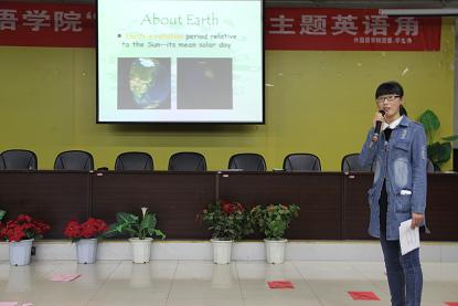 4月22日是第40个“世界地球日”,外国语贝宝官网学生会学习部举办了以“世界地球日”为主题的英语角活动。旨在唤起大家爱护地球、保护家园的意识,促进资源开发与环境保护协调发展。外国语贝宝官网团委书记王朝老师、外籍教师Miss Anna、Miss Chelsea、Miss Johnson和2014级全体同学参加了本次英语角。