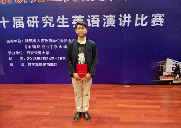 外国语贝宝官网与研究生院的推荐,外国语贝宝官网翻译硕士专业研究生马存智参加了在西安交通大学举办的西北地区第四届研究生英语演讲邀请赛暨陕西省第十届研究生英语演讲比赛。经过两天的激烈角逐,我院选手马存智获得此次演讲比赛专业组三等奖。
