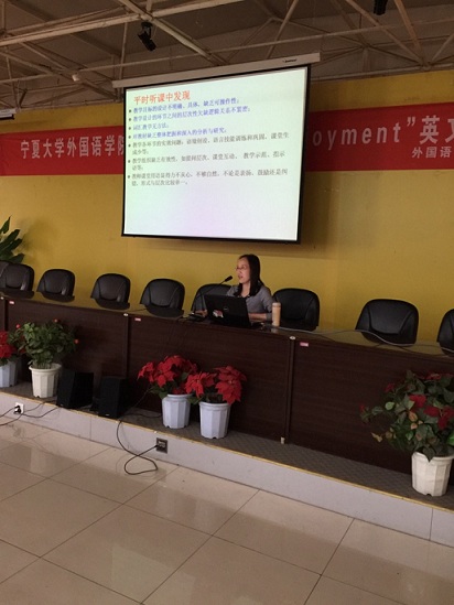 2015年5月5日和5月12日下午4点,金凤区教研室的教研员冯丽玲老师和银川九中阅海分校的韩爱华老师分别为外国语贝宝官网2012级全体师范生做了关于初中英语教学的讲座。这两次讲座分别讲述了教学目标的重要性和如何进行高效的英语阅读教学,使同学们获益匪浅。